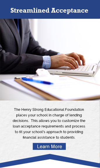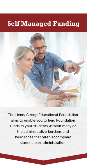 The foundation works directly with colleges and universities by making funds available for the schools to make loans to their students. Over the years, thousands of students have benefitted from the vision and legacy of Henry Strong.